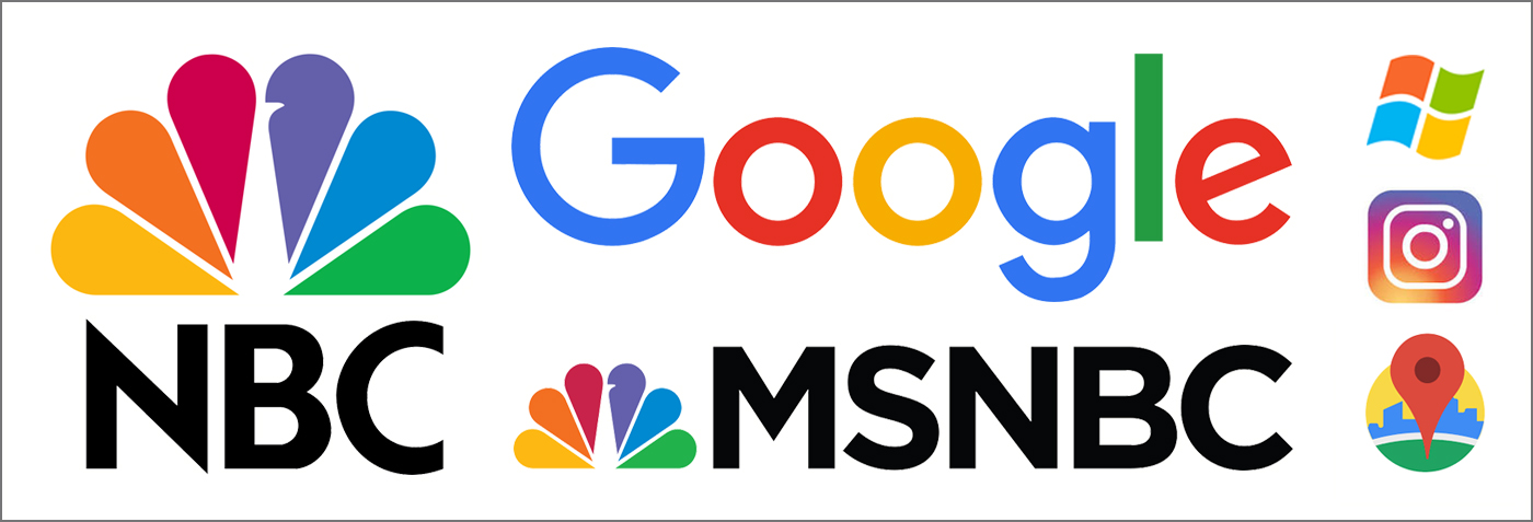 The modern and colorful peacock of NBC Network , was one of Vasken Kalayjian's first major rebranding projects at NBC, and is still in use today. Google uses similarly colorful approach for its brand.